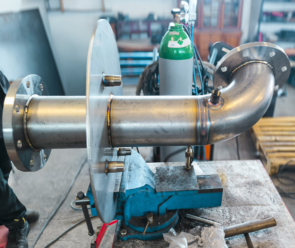Element został zaprojektowany i wykonany z wysoką precyzją, a spoiny wykonano metodą TIG, co zapewnia szczelność, trwałość i odporność na działanie czynników korozyjnych.
