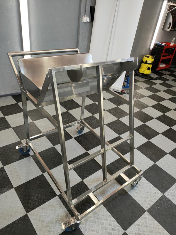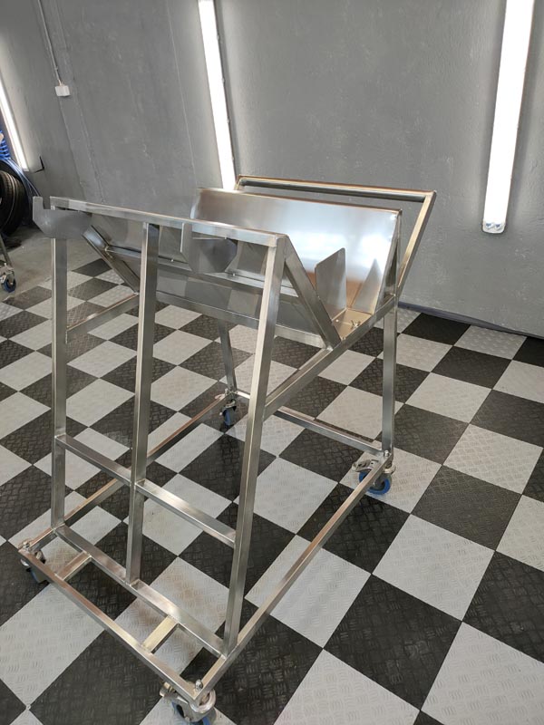 Zrealizowaliśmy kompletny projekt oraz wykonanie wózka ze stali nierdzewnej do transportu noży w branży gastronomicznej. Konstrukcja została zaprojektowana z myślą o trwałości, ergonomii i łatwości utrzymania czystości, spełniając wymogi sanitarne obowiązujące w przemyśle spożywczym.