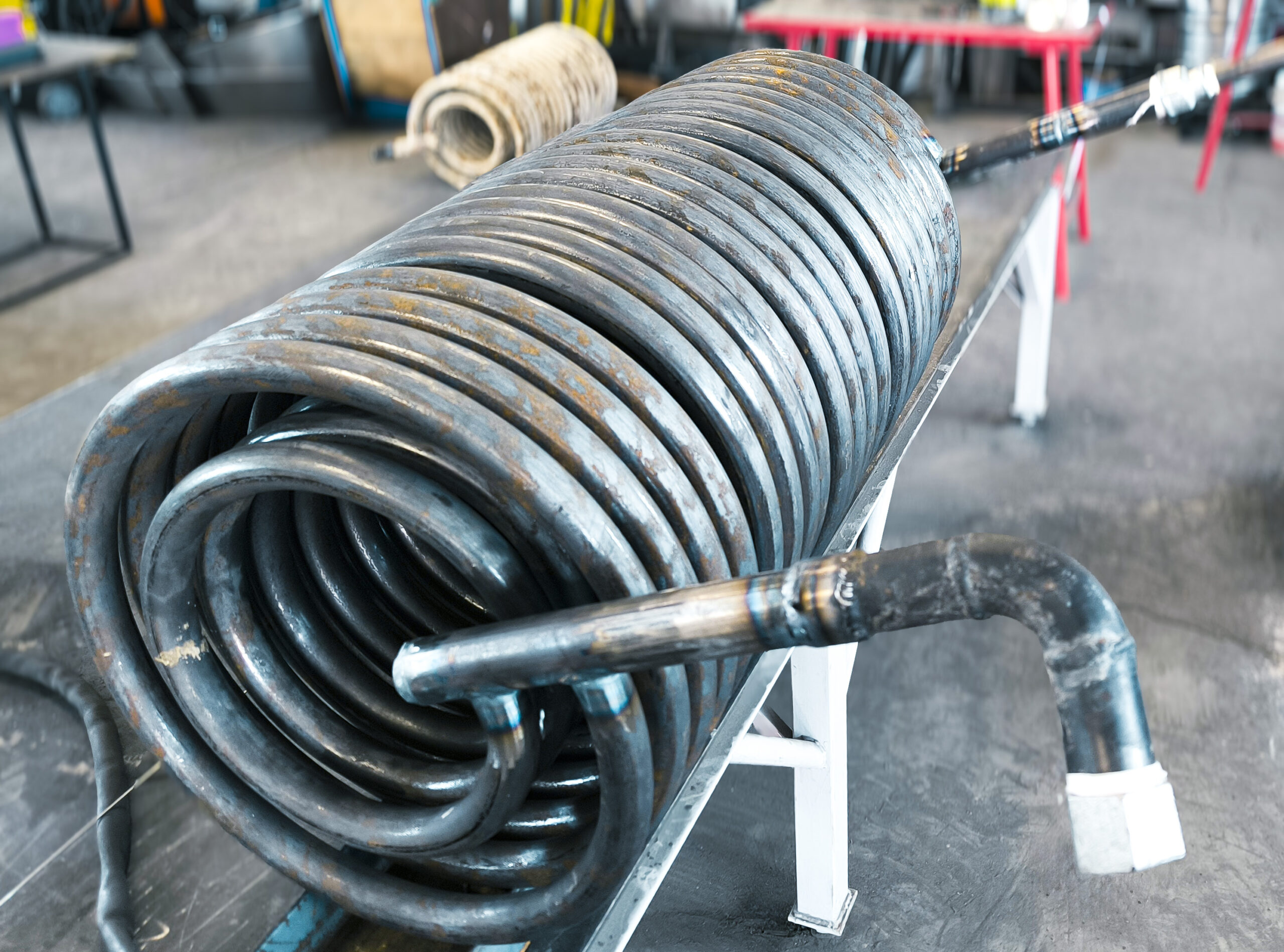 Realizacja obejmowała prefabrykację i montaż wężownicy stalowej. Element został wykonany zgodnie z dokumentacją techniczną oraz poddany próbie ciśnieniowej, potwierdzającej szczelność układu.